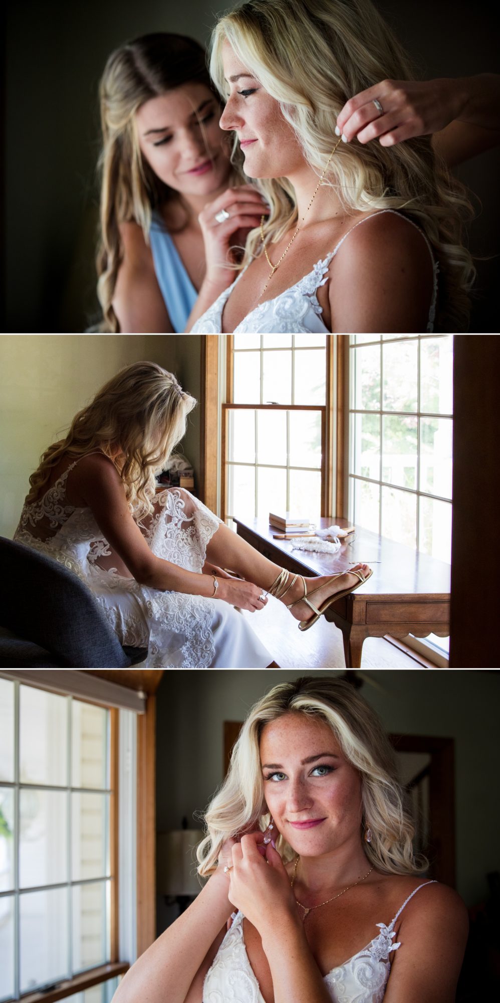We arrived to Jackie’s parent’s jam-packed house, completely filled with family members and bridesmaids scurrying about trying to find space to get ready. Among all the chaos we found our beautiful bride, calm and cool as could be. I suppose growing up with seven siblings really allows you to drown out all the mayhem. Her relaxed nature continued throughout the morning creating a smooth pace which almost seemed surreal. It seemed as nothing was going to ruffle her feathers. Not even when I called her Hope… again and again – lol.