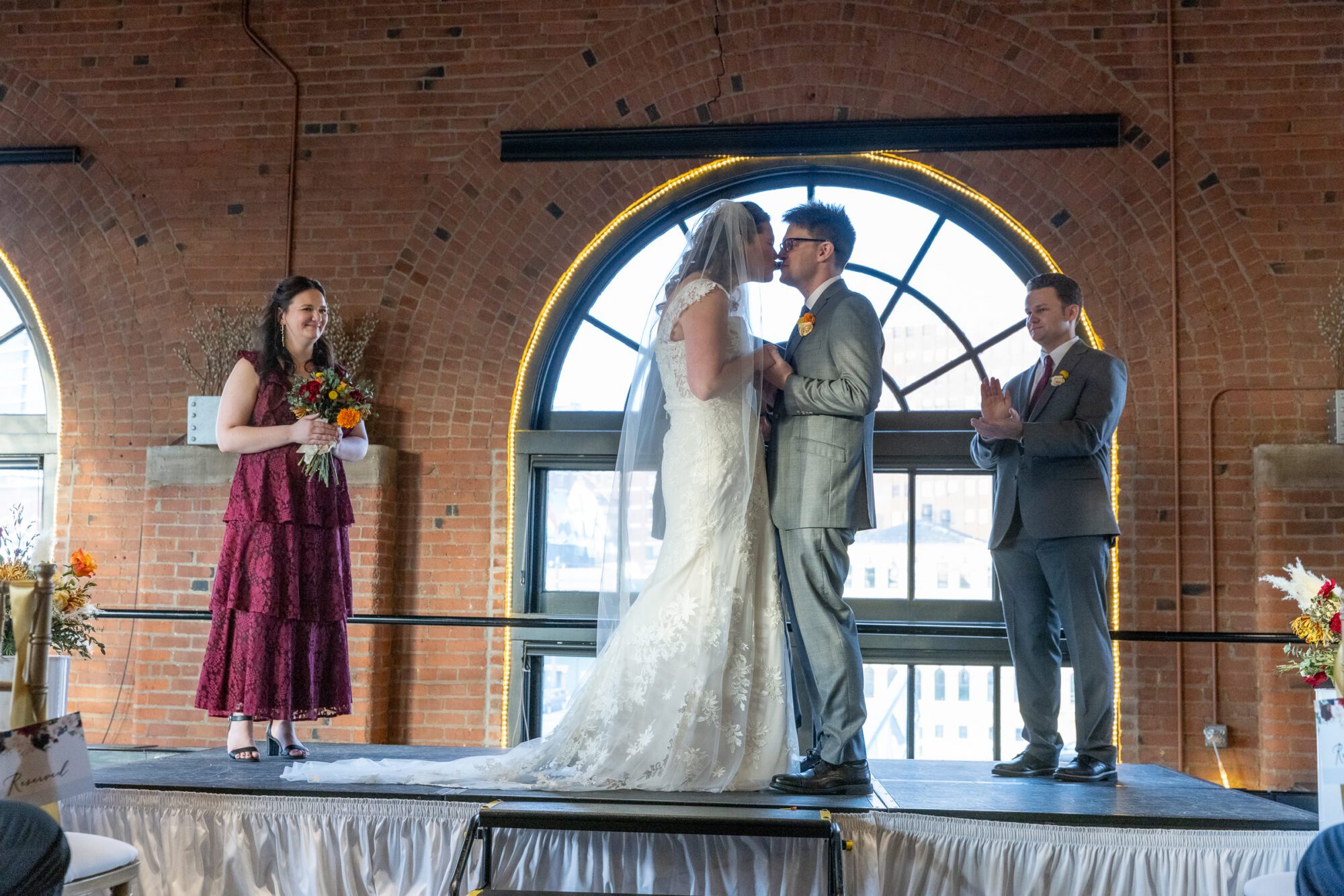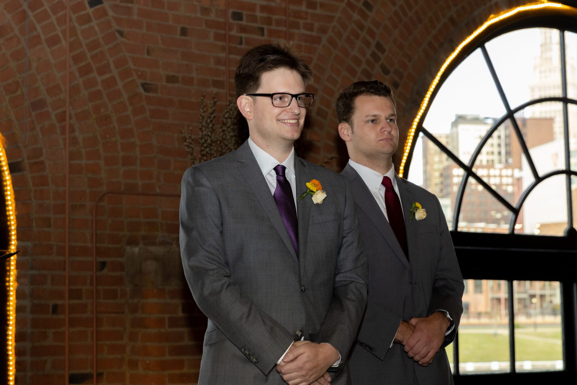 Choosing a venue like Windows on the River allows for a unique photographic backdrop that few other Cleveland wedding venues can match. The iconic view of the Cuyahoga River and the majestic viaduct arches provided a dramatic setting for the couple’s portraits.